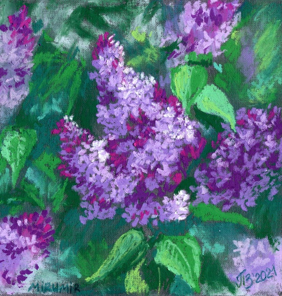 Source : blueislandpress.com.auLilac Painting Small Oil Pastel Floral Artwork 8 by 8 by Zoya